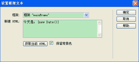 使用“設置框架文本”行為可以將框架的內容和格式替換成指定的內容,該內容可以包括任何合法的HTML代碼。使用該行為可以動態地設置框架的文本,也可以動態顯示信息。