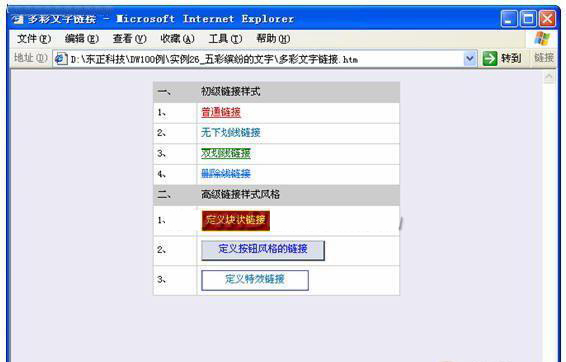 文字鏈接是網(wǎng)頁中最常見的頁面元素,在默認(rèn)狀態(tài)下,文字鏈接樣式都是帶下劃線的,這種一陳不變的外觀使網(wǎng)頁無法凸現(xiàn)個(gè)性和滿足布局的需要。為了使文字鏈接符合頁面的整體效果,可以采用 CSS (樣式)來實(shí)現(xiàn)多樣的文字鏈接。