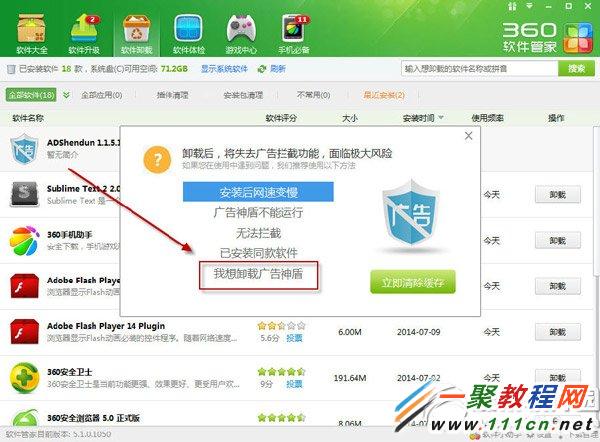 這樣就刪除好了,但是會發現一個問題,第二種方法有時刪除不了,這樣我們必須退出軟件了,但這樣刪除之后可能會有問題,所以推薦大家使用第一種方法出刪除軟件吧。