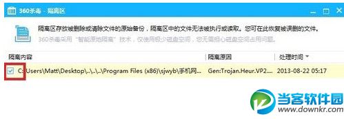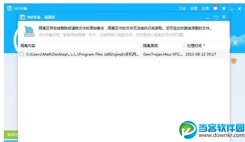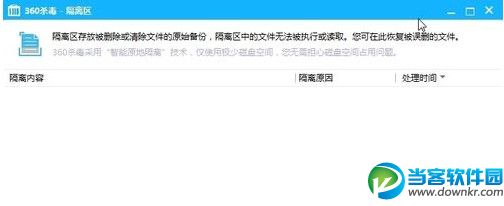 第三步:點擊隔離區按鈕打開隔離區的界面,你會發現被誤殺的軟件或程序就在里面。