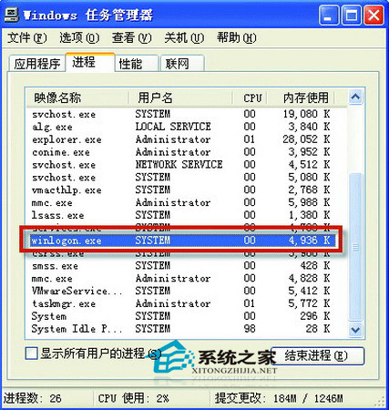▲winlogon.exe的作用是管理用戶登錄