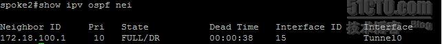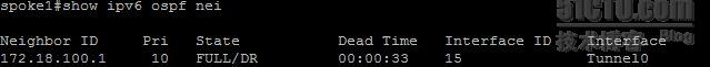config-if)#ipv6 ospf priority 0 //在接口模式下配置ospf 在spoke上配置優先級為0,確保ospf 廣播型網絡不參與選舉,成為DRother,保證網絡路由條目正常。