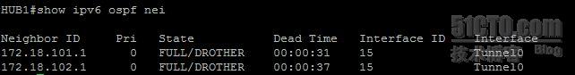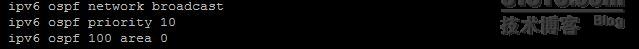 config-if)#ipv6 ospf priority 10 //在接口模式下配置ospf 在hub上配置優先級為10,確保ospf 廣播型網絡中成為DR