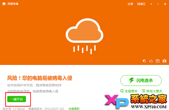 問:為什么百度殺毒提示我“風險!您的電腦易被病毒入侵”? 出現“風險!您的電腦易被病毒入侵”提示,可能是由于您未開啟百度殺毒“實時監控”或“自保護”功能引起的。請您在主界面右上角點擊倒三角下拉菜單,進入設置中心,檢查您是否開啟實時防護和軟件自保護,您也可以從主界面直接操作“一鍵開啟”。