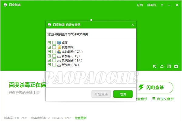 還可以選擇自定義查殺,然后用戶可以選擇想要掃描的內容。