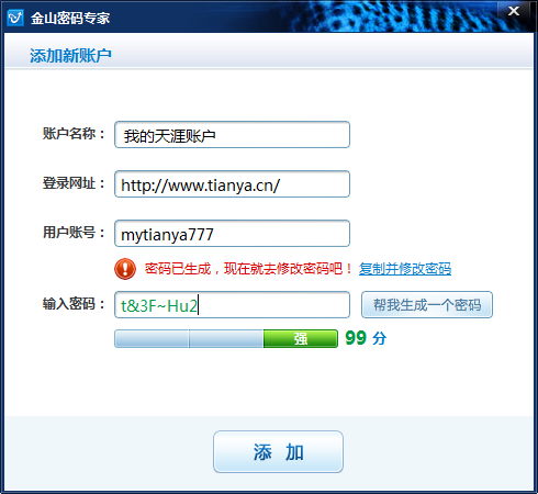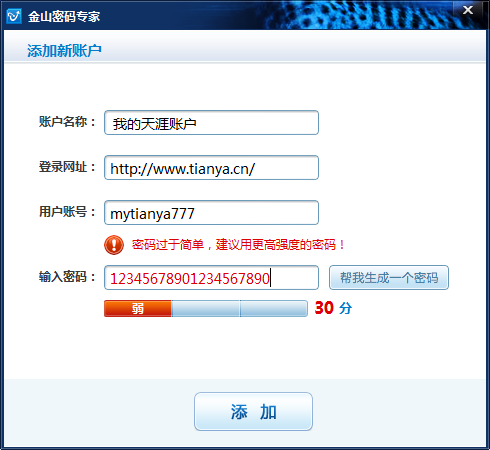 如果網(wǎng)民實(shí)在不知道什么樣的密碼更安全,密碼專家還可以幫助用戶生成一個(gè)安全的密碼。當(dāng)然,密碼越安全,看起來(lái)就越復(fù)雜,就越難記。不過(guò),有了密碼專家,你就不用擔(dān)心記不住了。