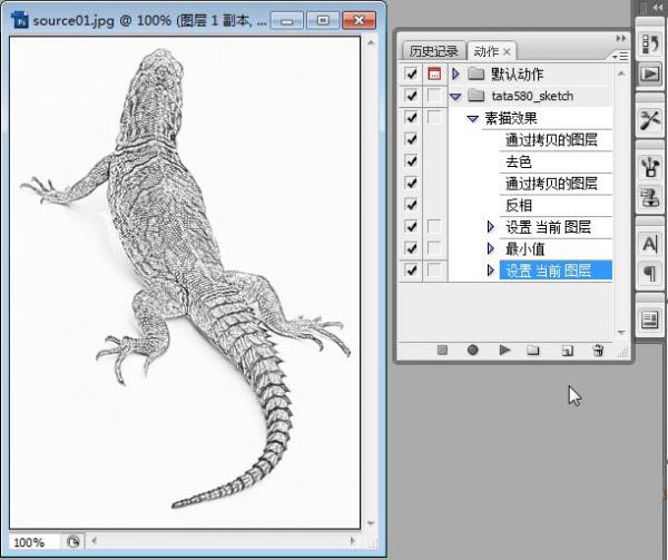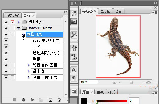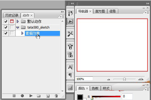 4、這里我們選擇一個現(xiàn)成的動作“素描效果”,如下圖所示: