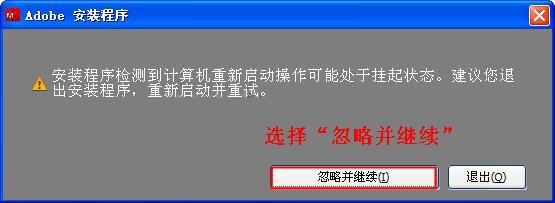 1、對于雙擊安裝后跳出的對話框選擇“忽略并繼續”。