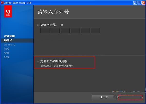 3、有序列號的童鞋可以輸入序列號,當然序列號是需要購買的。對于沒有序列號的童鞋就選擇安裝試用版吧。隨后選擇“下一步”。