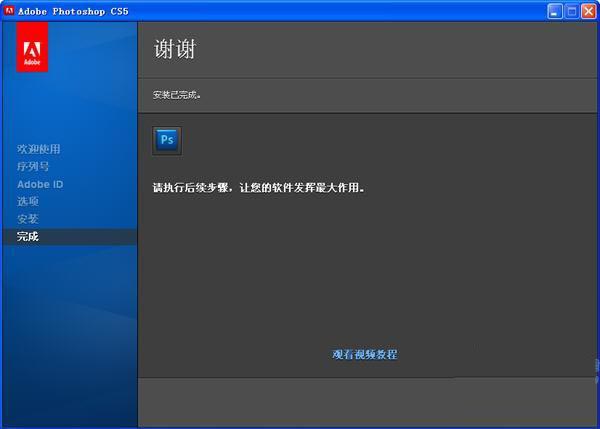 7、安裝完成,選擇“完成”。photoshop就此安裝完成了。