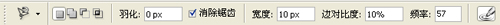 6、“頻率”的取值范圍在0-100,它是用來設(shè)置在選取時關(guān)鍵點創(chuàng)建的速率的一個選項。數(shù)值越大,速率越快,關(guān)鍵點就越多。當(dāng)圖的邊緣較復(fù)雜時,需要較多的關(guān)鍵點來確定邊緣的準(zhǔn)確性,可采用較大的頻率值,一般使用默認(rèn)的值57。