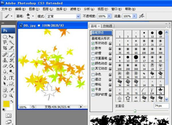 13、以下是選擇“楓葉”畫筆進行相應設置得到的效果: