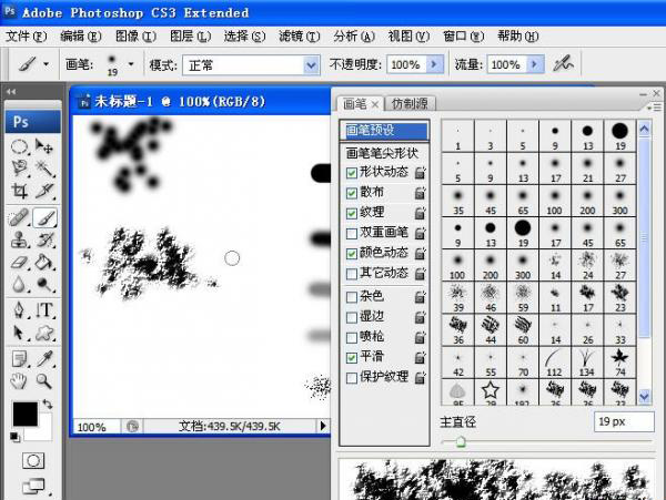 10、將“紋理”、“顏色動態”打勾,效果如下,當然,對于黑白畫筆,“顏色動態”可能看不見效果,其主要應用于一些彩色畫筆。