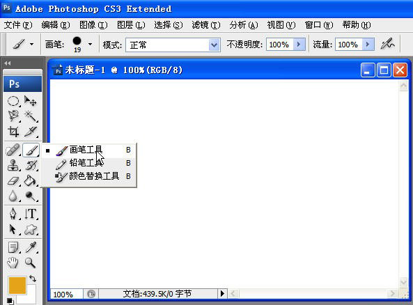 1、新建一個500*300的空白文檔,選擇常用工具欄中的畫筆工具,如下圖所示: