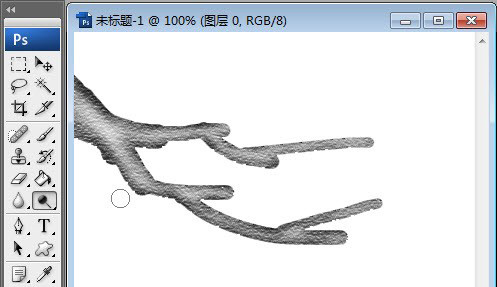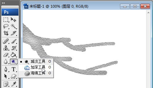 4、單擊選擇減淡工具,在枝干的中間部分進(jìn)行涂抹,如下圖所示: