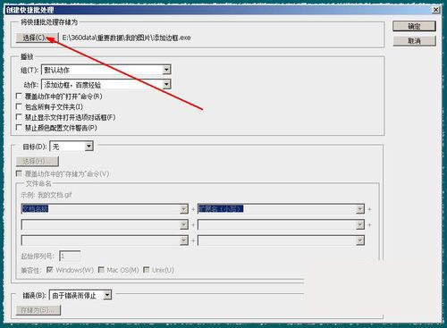 在打開的對話框中,我們點擊【選擇】,選擇一個存放批處理程序的地方,然后點擊確定按鈕