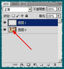 接下來選中圖層1,然后按住ctrl鍵,點擊圖層0 的縮略圖,載入選區。