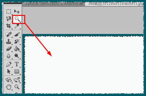 選中工具欄上面的魔術棒工具,點擊一下白色的區域,然后按下delete鍵刪除白色