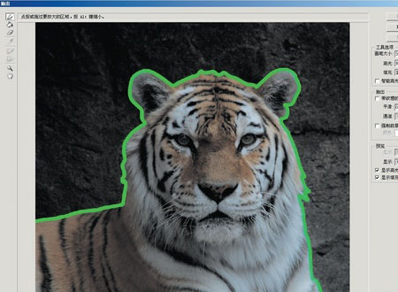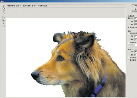 在詳盡講解[抽出]工具之前,先來談一下它的基本操作步驟。請您在自己的圖像上按此操作。要求對象必須有毛發,并且和其背景的對比不要太鮮明。