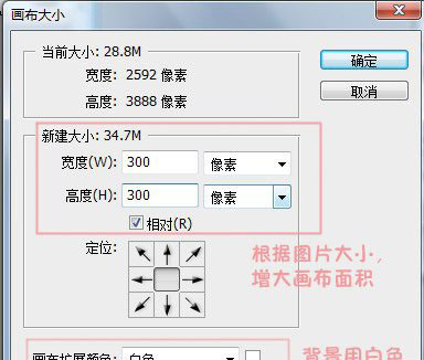 6.打開(kāi)“圖像—畫(huà)布大小”,根據(jù)圖片大小,擴(kuò)大畫(huà)布面積,背景色選白色。
