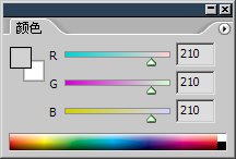 256×82%=209.92,近似算作210,我們可以先在灰度滑塊選擇18%,再切換到RGB滑塊看數(shù)值。如下2圖: