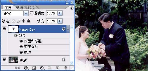 這時在圖層面板中可以看到在文字圖層中出現了如圖4所示的許多圖層樣式。