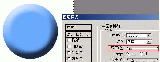 深度(Depth)、方向(Direction)、大小(Size)、柔化(Soften)