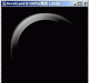 為了看清楚這兩個“虛擬“的層究竟是怎么回事,我們先將圖片的背景設(shè)置為黑色,然后為圓所在的層添加“內(nèi)斜角”樣式,再將該層的填充不透明度設(shè)置為0。這樣就將層上方“虛擬”的高光層分離出來了,如下圖: