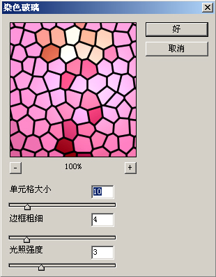 作用:將圖像重新繪制成彩塊玻璃效果,邊框由前景色填充。