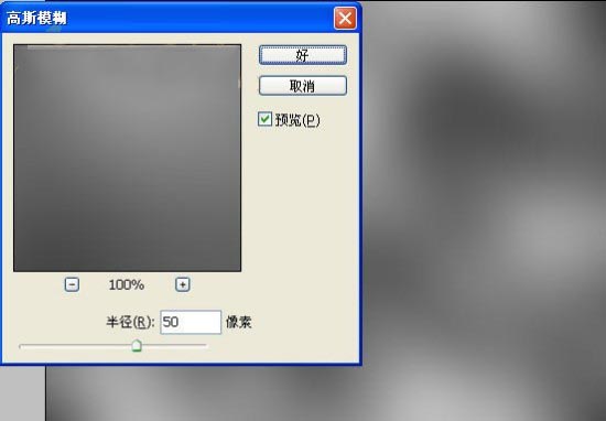 2、選擇菜單欄中的“濾鏡”“模糊”“高斯模糊”命令,在彈出的對話框中設置半徑為50,得到效果如圖2所示。