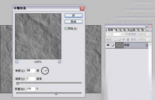 2.濾鏡——風格化——浮雕效果。參數看情況,我 的參數如圖,這樣已經形成我們所需要的皺紋效果了。