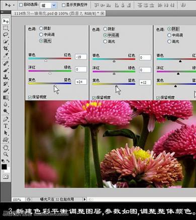 03.新建色彩平衡調整圖層,參數如圖,整體調整顏色