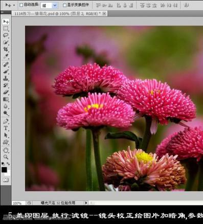05.蓋印圖層,執行濾鏡-鏡頭校正給圖片加暗角,參數自定