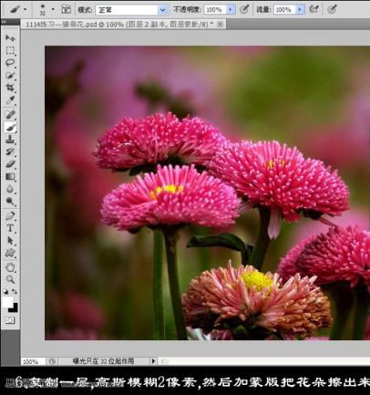 06.復制一層,高斯模糊2像素,然后加蒙版把花朵擦出來,虛化背景