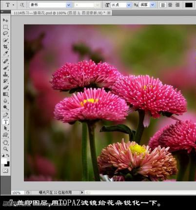 07.蓋印圖層,用TOPAZ濾鏡給花朵來銳化一下