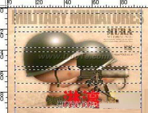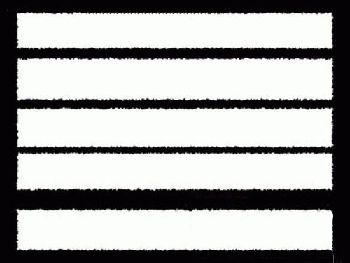選擇矩形選框工具,在圖中畫出五個橫向的矩形選框,使矩形的短邊對齊到參考線上,注意這幾個矩形的間距要錯落開,不要一樣,矩形間的距離,就是將來紙條間距,如果想讓它緊密一些,不妨把間距設(shè)的窄一些。將選區(qū)存為通道,將通道命名為H,取消選擇。