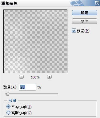 6、執行濾鏡--雜色--添加雜色,設置如下。