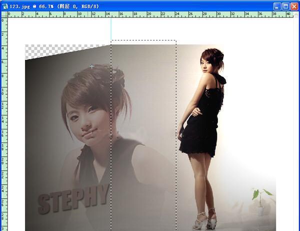 1、首先打開自己先準備好的素材圖片,然后用“矩形選框工具”勾出一個矩形選區,如果是要折疊三等分,這里就勾圖片的三分之一。