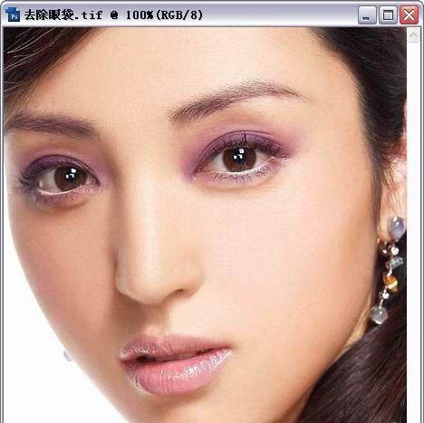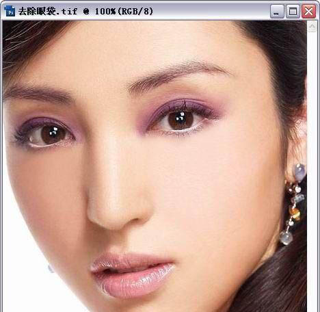 1、執行【文件→打開】命令(快捷鍵Ctrl+O),打開素材圖片:“去除眼袋.tif”,我們將看到整個圖片如圖2所示。