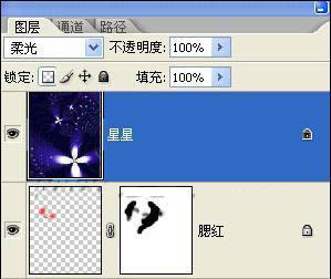 10、素材圖片,用移動工具移至上述文件,且放置在圖層最上方,命名為"星星",調整圖層混合模式為柔光,效果如下:
