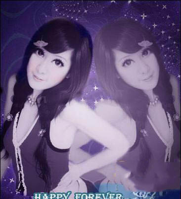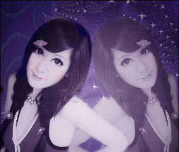 1、把背景圖層復制一層,然后用液化濾鏡中的膨脹工具將人物眼睛變大,然后用橢圓選框工具選擇嘴巴,羽化選區5像素,使用濾鏡扭曲-擠壓,數量為50,并用加深工具,調整適當的筆觸大小,對眼睛周圍加深,曝光度調為20效果如圖1:
