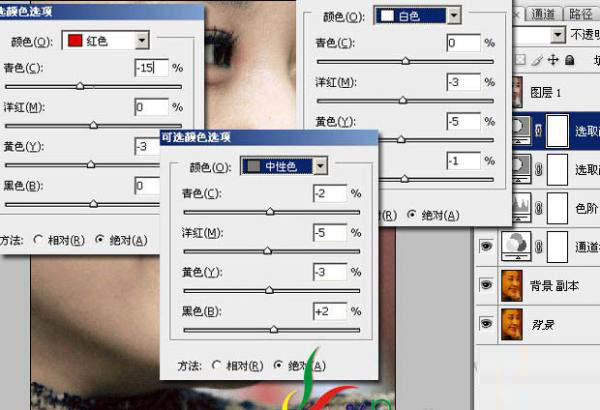 3、再建可選顏色,方法:絕對,調整如下: