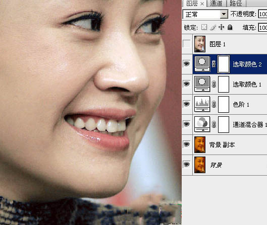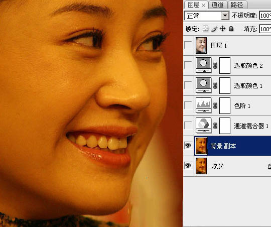 1、打開原圖,復制一層。這圖片我們第一眼看到就是嚴重偏紅和黃,所以先用通道混合糾正大致的顏色。