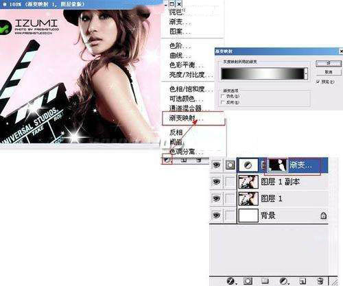 二.創建新的漸變映射圖層,漸變色改成黑白黑