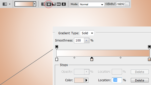 1.創建一個新文檔,寬度600,高度340。如下所示設置漸變工具。