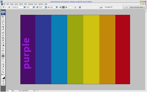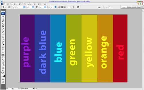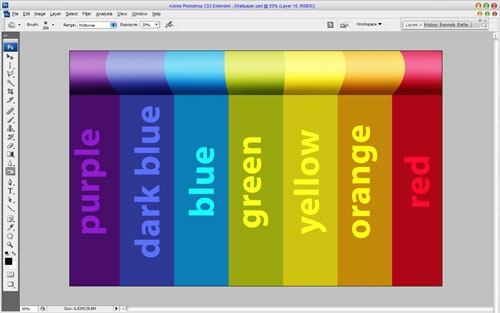 用同樣的方式添加5個不同顏色的線條。每行使用下列顏色:#0b7eb5,#9aa70e,#cfc211,#c3880a和#ae0617?,F(xiàn)在,我們得到了很棒的彩虹畫布。