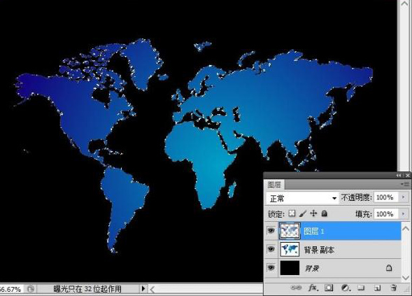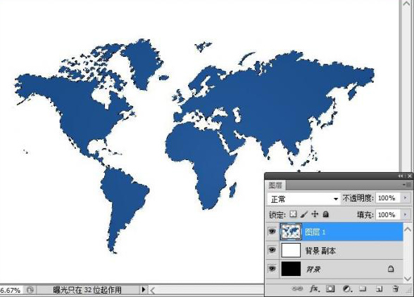 4.由于地球陸地素材中的顏色是漸變色,所以我們保持選區不動,為其填充藍色,并把背景副本填充白色,效果如圖。