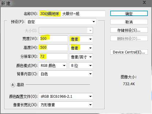 7.新建文檔,注意文檔大小,文檔太大的話會導致顯卡渲染失敗。