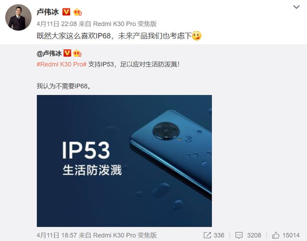 盧偉冰:既然大家這么喜歡IP68,未來產