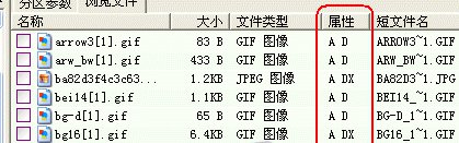 在恢復文件的狀態下,文件列表中的“屬性”欄將給已刪除文件增加兩個標記“D”和“X”。“D”表示這是一個已刪除的文件。“X”表示這個文件的數據可能已被部分或全部覆蓋,文件數據完全恢復的可能性較小。